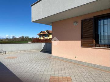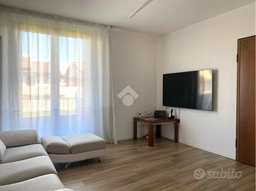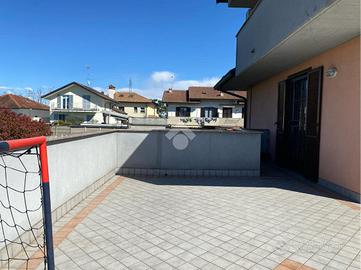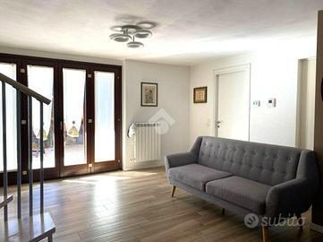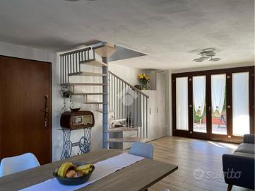 TRILOCALE CON GIARDINO E TERRAZZO - In piccola palazzina e in tranquillo contesto residenziale proponiamo in vendita trilocale con giardino e terrazzo. La soluzione, disposta su due livelli, presenta al primo piano un soggiorno con cucina abitabile (attualmente adibita a zona studio), un disimpegno, due camere di cui una matrimoniale ed un bagno finestrato con doccia. Dalla cucina e dalla camera si accede ad un ampio terrazzo di circa 60 mq dove è possibile trascorrere dei piacevoli momenti di relax. Dal soggiorno e dalla camera matrimoniale si accede invece ad un balcone ampio in lunghezza. Una comoda scala a chiocciola collega il soggiorno alla taverna, situata al piano terra, attualmente adibita a zona living con annesso bagno finestrato con doccia. Dalla taverna si accede direttamente al box e al giardino di circa 40 mq. L'immobile è rifinito con due porte blindate, videocitofono (in taverna) e citofono (in soggiorno), infissi in legno doppio vetro, persiane in legno, inferriate e predisposizione aria condizionata. Per appuntamenti i nostri incaricati sono disponibili dal lunedì al venerdì dalle ore 9.00 alle 12.30 e dalle 14.30 alle 19.30 e il sabato dalle 9.00 alle 12.30. A vostra disposizione uno staff di consulenza creditizia in grado di proporvi il mutuo o il finanziamento più adatto alle vostre possibilità. Contattateci per fissare un incontro gratuito nei nostri uffici. Ogni agenzia ha un proprio titolare ed è autonoma.