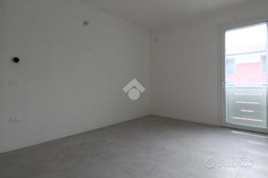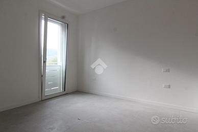 Un disimpegno conduce alla zona notte, dove sulla destra abbiamo il primo bagno cieco, dotato di una moderna doccia walk-in e dove risiede la pompa di calore. Proseguendo per il disimpegno, incontriamo la zona lavanderia, la camera singola, seguita dalla camera matrimoniale. La zona notte si completa con un secondo bagno finestrato, comodo e dalle finiture moderne.