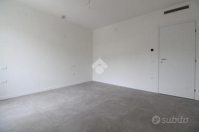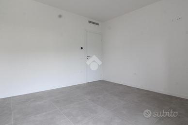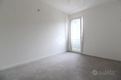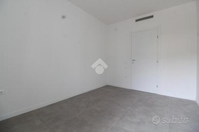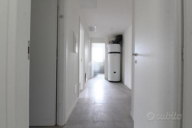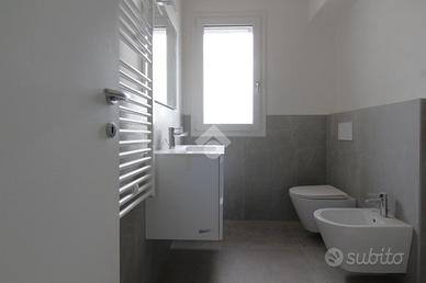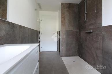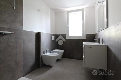 Un disimpegno conduce alla zona notte, dove sulla destra abbiamo il primo bagno finestrato, dotato di una moderna doccia walk-in e predisposto per la zona lavanderia. Proseguendo, incontriamo la camera singola, seguita dalla camera matrimoniale. La zona notte si completa con un secondo bagno finestrato, comodo e dalle finiture moderne.