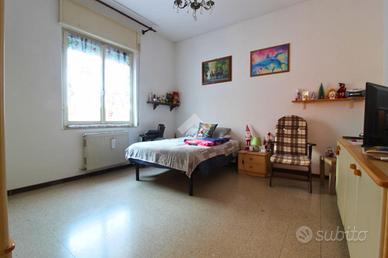 Appartamento al primo piano composto da ingresso, cucina abitabile con retro e balcone verandato, soggiorno con balcone che può diventare una camera matrimoniale all'occorrenza, due camere matrimoniali, bagno. Completa la proprietà un fondaco al piano terra e un posto auto privato.