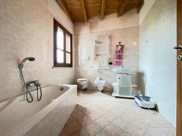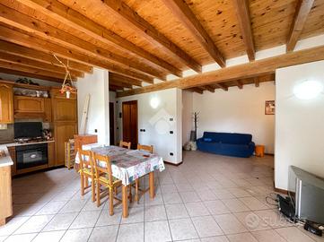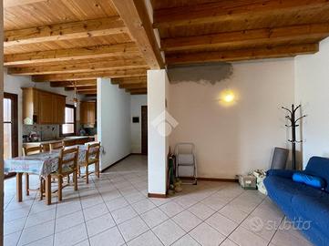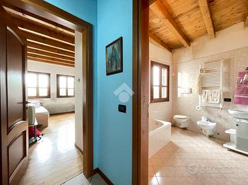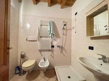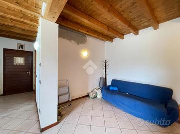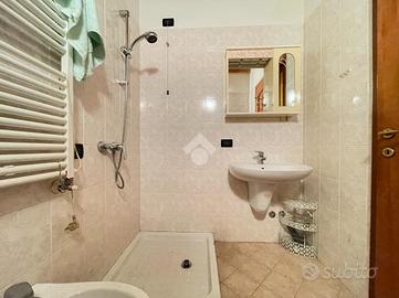L'ingresso si apre su un disimpegno che porta direttamente al soggiorno e cucina in open space. La zona notte è composta da due camere da letto: una matrimoniale e una singola. Completano l'immobile un bagno finestrato con vasca, un antibagno e un bagno cieco con doccia.