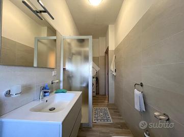 Proseguendo, la zona notte è composta da due camere da letto matrimoniali, entrambe spaziose e ben illuminate. Il bagno è finestrato, recentemente ristrutturato, dotato di box doccia e attacco per la lavatrice. Pratico ripostiglio, utile per mantenere ordine e funzionalità.