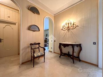 L'ingresso ci accoglie con eleganti archi che conducono al grande soggiorno, illuminato da una porta finestra che dà accesso al balcone, perfetto per momenti di relax all'aperto. La zona giorno è completata da una luminosa sala da pranzo e una cucina separata, abitabile e funzionale.