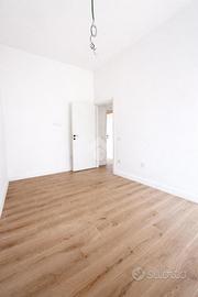 ingresso sul soggiorno ampio e luminoso, una cucina abitabile, disimpegno, una camera singola con balcone di 8mq sul quale affacciano tutti gli ambienti, un bagno con doccia e un ampia camera matrimoniale completa di cabina armadio e bagno padronale con box doccia.