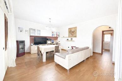 Internamente l'immobile è composto da una zona giorno di circa 40 mq, che comprende soggiorno e cucina abitabile con zona dispensa; i due ambienti sono separati da un infisso interno scorrevole.