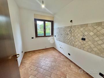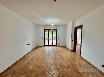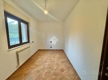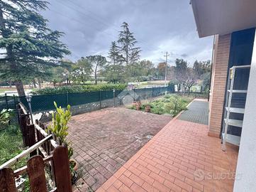 In zona centrale di Palazzo di Assisi, su palazzina antisismica a mattoncino del 2008, disponiamo di appartamento posto al piano terra con ampio giardino privato. L'immobile è in ottime condizioni generali e si compone di luminoso soggiorno, cucina separata, camera matrimoniale, camera doppia, bagno finestrato con vasca e ripostiglio con predisposizione per bagno ventilato. Completano la proprietà il giardino di 210 mq ed il garage di 28 mq al piano interrato. Avvolgibili elettrici, canna fumaria, predisposizione a/c
