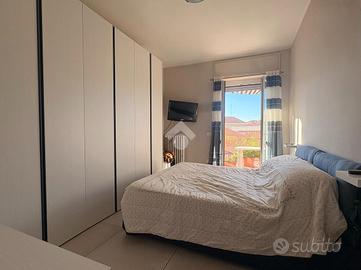 Via Buonarroti, nel comune di Asti, appartamento al secondo piano servito da ascensore. La soluzione, recentemente ristrutturato in stile moderno, offre ambienti luminosi con doppia esposizione e subito abitabili. Un soggiorno con angolo cottura si apre su uno spazioso balcone, ideale per momenti di relax all'aperto con vista sulla zona circostante. Le due camere da letto, di cui una con accesso a un secondo balcone, garantiscono comfort e privacy. Il bagno è accompagnato da un pratico antibagno, mentre un ripostiglio aggiunge funzionalità agli spazi interni. L'appartamento è dotato di aria condizionata, assicurando un ambiente confortevole in ogni stagione. Completano la proprietà una cantina e un box auto, disponibile con richiesta a parte. La soluzione è in zona tranquilla e soleggiata, senza rinunciare alla comodità dei principali servizi di Asti.
