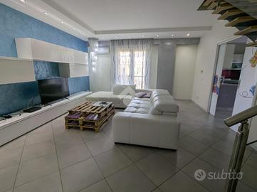 A pochi passi dal Tribunale si trova un elegante duplex disponibile per la locazione. Questo immobile offre un ambiente moderno e funzionale, distribuito su due livelli. Al terzo piano, gli spazi si aprono con un ampio salone arredato, una cucina abitabile completamente attrezzata con elettrodomestici di ultima generazione, ideale per chi ama cucinare e intrattenere, ed un bagno con annesso vano lavanderia, garantendo praticità e comfort. Salendo al quarto piano, si accede alla zona notte, composta da una camera matrimoniale dotata di un bagno privato con vasca idromassaggio, ideale per momenti di relax. Completa il piano una seconda camera da letto con bagno privato servito da doccia e un comodo ripostiglio. Gli infissi con vetrocamera garantiscono un ottimo isolamento termico e acustico, mentre i condizionatori d'aria assicurano comfort in ogni stagione. La zona notte è caratterizzata da un elegante parquet, che dona calore e raffinatezza agli ambienti. Completa la proprietà un comodo box auto, che rappresenta un valore aggiunto per chi cerca praticità e sicurezza. Questa soluzione abitativa è perfetta per chi desidera vivere in un contesto tranquillo, senza rinunciare alle comodità moderne. E' possibile visionare l'immobile tutti i pomeriggi e le mattine del martedì e del mercoledì a partire dalle 11.15 mentre il giovedì mattina a partire dalle ore 10.15.