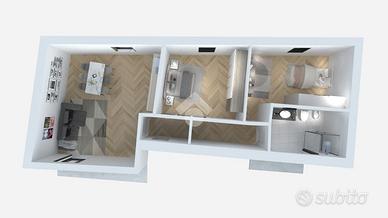 L'immobile si compone di tre locali ben distribuiti, offrendo due camere da letto accoglienti e un bagno finestrato funzionale.