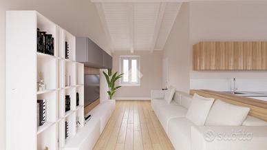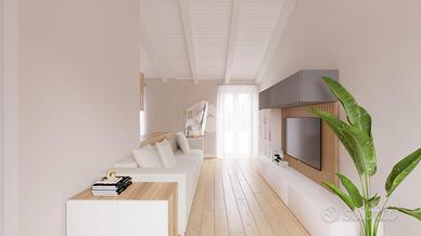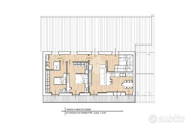 AZEGLIO - Lo stabile è situato in centro paese, a pochi passi dal campo sportivo. Sarà oggetto di una ristrutturazione totale, dove verranno realizzati due appartamenti e una soluzione semi indipendente. Si potranno scegliere i materiali, le finiture e la disposizione interna. L'alloggio in questione è collocato al secondo ed ultimo piano, con doppia esposizione e riscaldamento autonomo a pavimento. Dall'ingresso si accede direttamente alla zona giorno, composta da un soggiorno con cucina a vista. Il disimpegno separa la zona notte dove sono presenti le due camere da letto, di cui una matrimoniale e una ad uso singolo. Tutti gli ambienti sono dotati di porta finestra con uscita sul balcone esterno che corre lungo tutta la facciata. Un bagno finestrato con doccia. Di proprietà anche una cantina e un box auto singolo al piano terra dello stesso stabile.