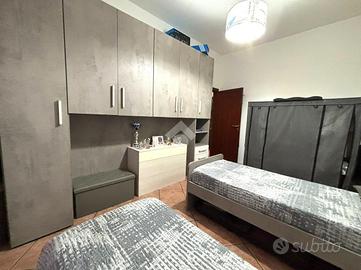 Si accede attraverso una porta blindata su un piccolo ingresso che conduce alla luminosa e accogliente zona living con cucina-soggiorno ampia e ben organizzata. Un disimpegno separa la zona giorno dalla zona notte, composta da una camera matrimoniale, una cameretta doppia e un bagno finestrato con box doccia.
