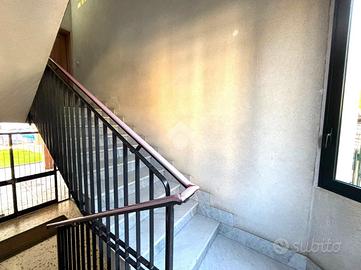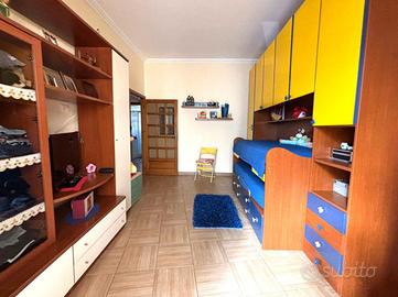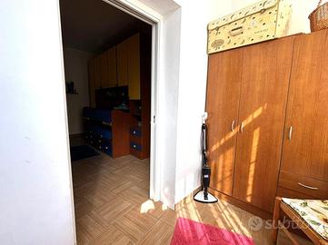 Un disimpegno conduce alla zona notte, composta da una camera da letto matrimoniale, una cameretta e un bagno con box doccia. Completa la soluzione una comoda cantina di circa 7 mq.