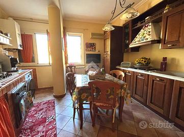 L'immobile ha una superficie di circa 98 mq e gode di una doppia esposizione che garantisce ottima luminosità. L'ingresso si apre su un corridoio che distribuisce gli ambienti: sulla sinistra si trova la cucina abitabile, mentre sulla destra un ampio e luminoso soggiorno.
