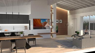 Signorile complesso di prossima realizzazione di appartamenti in villa di ultima generazione ad alto risparmio energetico. Appartamento al piano terra di tre locali con doppi servizi. Ingresso indipendente, giardino privato e box grande di 30 mq. La soluzione è completa di fotovoltaico 2 Kw, pompa di calore elettrica, riscaldamento a pavimento, cappotto esterno, serramenti in pvc e tapparelle elettriche, zanzariere, impianto di ventilazione meccanica controllata dell'aria.