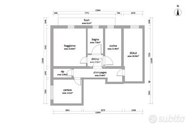 L'appartamento, di circa 60 metri quadrati, si apre su un corridoio che ben divide la zona giorno composta da cucina abitabile, soggiorno e bagno dalla zona notte ove troviamo una camera da letto e un ripostiglio.