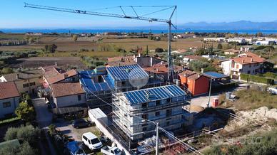 BARDOLINO: Località Modena - in zona tranquilla e verdeggiante a circa 2 km dal centro paese proponiamo nuovo intervento immobiliare di 8 unità abitative di varie tipologie e dimensioni. Il futuro residence si inserisce in un'area di circa 2.500 mq garantendo ampi spazi comuni e una piscina condominiale immersa nel verde sulle prime colline di Bardolino. La soluzione che vi presentiamo è un appartamento trilocale di generose dimensioni posto al piano primo e dotato di un terrazzo coperto di 10 mq; al suo interno si compone di una ampia zona giorno, una cucina abitabile con uscita sul terrazzo, due camere da letto (matrimoniale e doppia) e un bagno. Tutte le unità avranno a disposizione un posto auto coperto aggiuntivo a quello già assegnato. La nuova realizzazione sarà certificata in "CLASSE ENERGETICA A+". Tale certificazione sarà resa possibile da un importante pacchetto termo isolante sulle murature perimetrali e solai, muri divisori interni in cartongesso a doppia parete, riscaldamento e raffrescamento in pompa di calore ad aria senza quindi rendere necessario l'allaccio al gas metano), serramenti in legno a triplo vetro ad alto isolamento termo - acustico, impianto fotovoltaico per la gestione delle apparecchiature elettriche comuni. Possibilità di personalizzazione delle finiture.