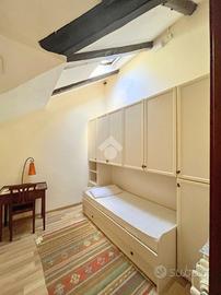 In zona centrale del paese di Bardonecchia, comoda a Via Medail e alla stazione ferroviaria ma allo stesso tempo anche agli impianti sciistici. L'appartamento è situato al piano terzo, senza ascensore, di una villa degli anni 40 circondata da un'ampio parco verde. Entrata su soggiorno e cucina open space, contenente un divano letto singolo. Presenti due camere da letto, di cui una con letto doppio a ponte e un ulteriore camera da letto singola con accesso esterno. Bagno con doccia.