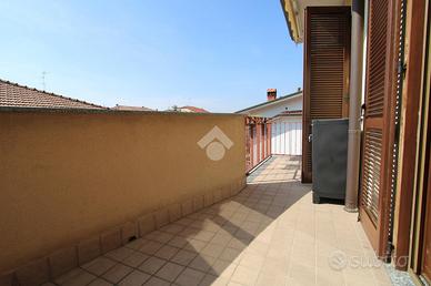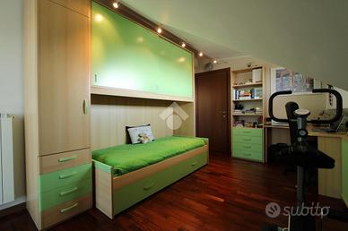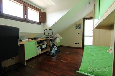 BAREGGIO: Siamo ubicati nella frazione di San Martino, al confine con San Pietro all'Olmo. La zona è residenziale ed ideale per nuclei familiari. A piedi si possono raggiungere facilmente la scuola elementare di via Mirabello e la scuola materna di via Pertini, i parchi giochi attrezzati, le aree verdi del paese e, le fermate dei mezzi pubblici che conducono a Milano. La via dove l'immobile è sito, è una strada privata con costruzioni di piccola altezza. L' appartamento si trova all'interno di una piccola palazzina di quattro abitazioni, senza ascensore e si sviluppa su due livelli. La disposizione interna prevede l'ingresso sul soggiorno con accesso al terrazzino, poi segue la cucina abitabile ed il primo servizio finestrato. Tramite la scala passiamo al piano superiore dove abbiamo due camere da letto fornite di balcone ed infine il bagno, anch'esso finestrato. Gli spazi sono comodi, facili da arredare e grazie alla tripla esposizione ed alla vista libera l'abitazione risulta luminosa. Tutti i locali si trovano in condizioni pari al nuovo e con finiture moderne come: infissi in legno con doppio vetro, zanzariere, tende da sole motorizzate, aria condizionata, allarme, riscaldamento autonomo bi-zona e videocitofono. Il box, che è ampio ed allarmato, è proposto a parte a € 25.000 aggiuntivi. Per appuntamenti i nostri incaricati sono disponibili dal lunedì al venerdì dalle ore 9.30 alle 12.30 e dalle 14.30 alle 20.00 e il sabato dalle 9.30 alle 12.30 e dalle 14:30 alle 18:00. A vostra disposizione uno staff di consulenza creditizia in grado di proporvi il mutuo o il finanziamento più adatto alle vostre possibilità. Contattateci per fissare un incontro gratuito nei nostri uffici. Ogni agenzia ha un proprio titolare ed è autonoma.