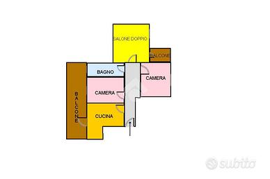 Entrando nell'appartamento, si viene accolti da un ingresso con corridoio che conduce ai vari ambienti della casa. Il salone doppio, con due punti luce, dispone di un balcone esterno e di una finestra, offrendo un ambiente ampio e luminoso. La cucina abitabile è dotata di un balcone interno, l'appartamento comprende inoltre due camere da letto, un bagno e un comodo ripostiglio.