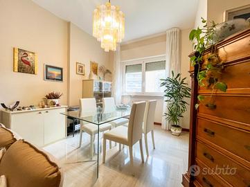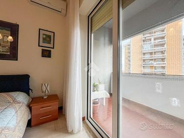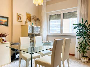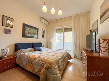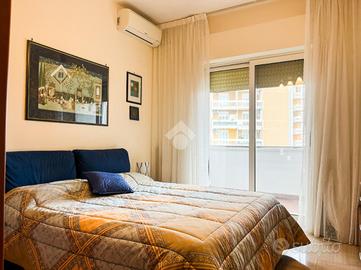 La zona notte è ben separata e comprende due ampie camere da letto: la camera matrimoniale, dotata di un balconcino privato con affaccio su via Giustino Fortunato, e una seconda camera con finestra affacciata internamente. Completa la disposizione il bagno finestrato.