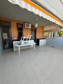 Torre A Mare - Nel rinomato complesso residenziale Punta Azzurra 1, vendesi appartamento al piano terra con cortile antistante e retrostante. L'immobile è composto da ingresso-soggiorno con cucina, camera da letto, cameretta, bagno e piccolo ripostiglio. Completa la proprietà il box-auto. Il complesso è dotato di guardinia 24h su 24, piscina, campo da tennis e ampi spazi verdi condominiali.
