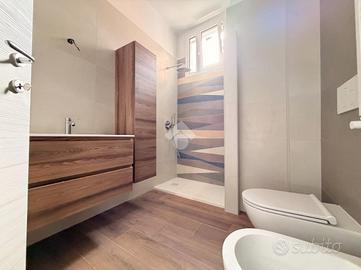 - Bagno finestrato con doccia walk-in e sanitari sospesi, lavatrice ed asciugatrice