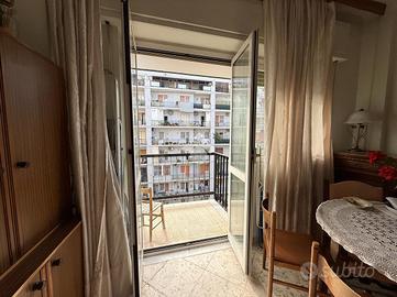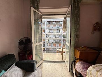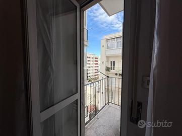 L'ingresso conduce a un lungo corridoio che disimpegna in modo ordinato i vari ambienti della casa. Subito sulla destra si trova la prima camera da letto, dotata di balcone con affaccio esterno su Viale Imperatore Traiano. Proseguendo lungo il corridoio, sempre sul lato destro, si accede al soggiorno, anch'esso caratterizzato da un affaccio esterno tramite balcone che conferisce grande luminosità all'ambiente.