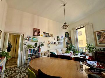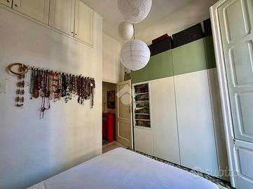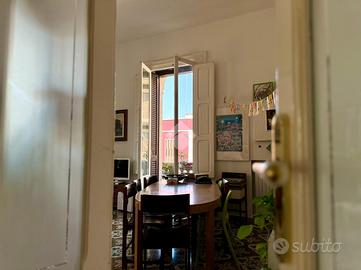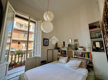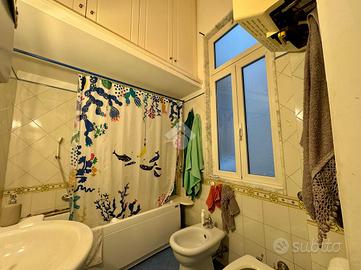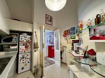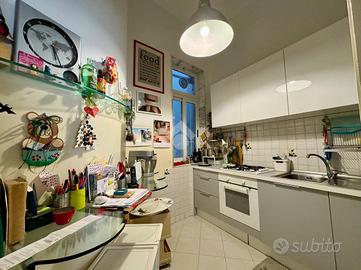 Sul lato destro dell'ingresso si sviluppa il resto dell'appartamento composto da un ampia cucina con affaccio interno, seguita da un bagno finestrato, preceduto da un pratico antibagno attualmente adibito a zona lavanderia. Completa la proprietà una spaziosa camera da letto matrimoniale con affaccio esterno su corso Sonnino.