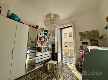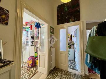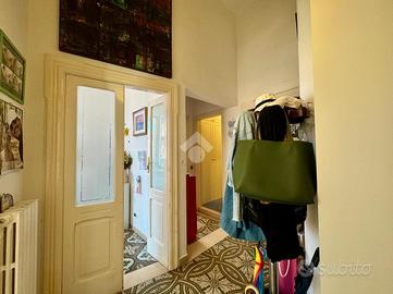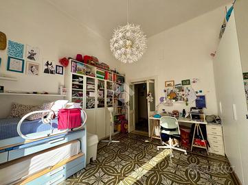 Accedendo all'abitazione si viene accolti da un comodo disimpegno che conduce agli ambienti principali. Frontalmente si apre un ampio e luminoso soggiorno, caratterizzato da una doppia esposizione angolare con affacci su corso Sonnino e su via Pisani, che conferiscono grande ariosità e luce naturale all'ambiente. Proseguendo sulla sinistra rispetto all'ingresso si trova la prima camera da letto, anch'essa molto luminosa grazie all'affaccio esterno su via Pisani.