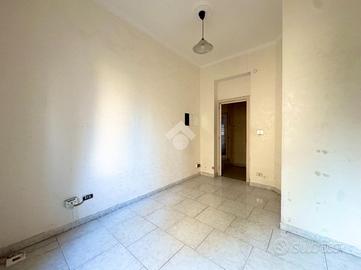 Sulla sinistra si apre la prima stanza, dotata di finestra e ideale come camera da letto o studio, proseguendo, si accede all'ampio soggiorno, luminoso e ben arieggiato, con uscita su un piccolo balcone.