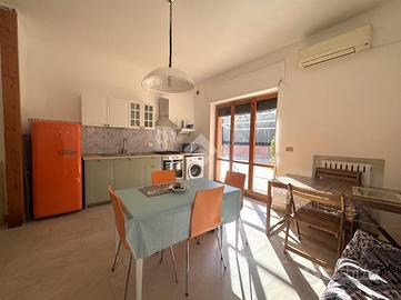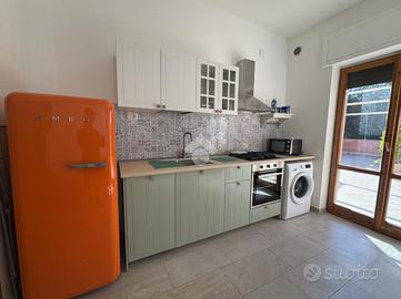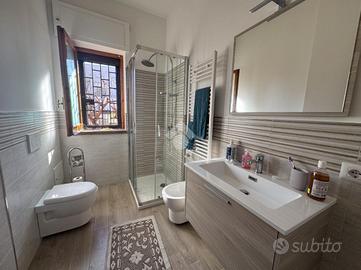 Palese - In Traversa 3 bis Nazionale, all'interno del compesso 'Villaggio Azzurro' dotato di piscina condominiale e campo da tennis, prponiamo in vendita grazioso trivani disposto su due livelli. L'immobile, di circa 105mq, si presenta con ambienti ampi e ben distribuiti: ngresso nel disimpegno, soggiorno-pranzo con affaccio su un panoramico terrazzo a livello, due comode camere da letto e bagno. Il piano seminterrato, dispone di un'ampia zona relax, stanzetta e bagno con ripostiglio. Completano la proprietà curato giardino privato e due pratici posti auto. Rifiniture interne: riscaldamento autonomo alimentato con caldaia a gas metano, climatizzatori, grate di protezione, tende da sole, tapparelle elettriche, pavimentazione in gres porcellanato, sanitari sospesi. Soluzione ideale per chi desidera vivere in un contesto residenziale esclusivo, immerso nel verde e dotato di servizi, senza rinunciare a comfort, privacy e spazi esterni. Ottima opportunità sia come abitazione principale che come investimento.