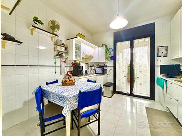 L'immobile si apre su un comodo ingresso con disimpegno che conduce sulla destra alla sala da pranzo, collegata ad una cucina esterna realizzata su terrazzo in uno spazio chiuso adibito a cucina, perfetto per chi ama organizzare pranzi e cene in totale funzionalità. Da qui si accede ad uno splendido terrazzo di circa 30 mq, uno spazio esterno vivibile che rappresenta un vero valore aggiunto, ideale per momenti di relax o convivialità.