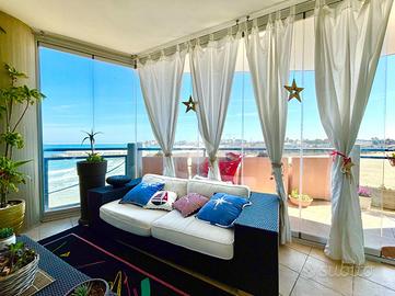 Nel cuore di Bari, in contesto residenziale moderno all'interno del Residence Jupiter, a pochi passi dalla spiaggia del Canalone e in posizione strategica, ben servita da attività commerciali e servizi, proponiamo in vendita un elegante appartamento in stabile del 2007 recentemente ristrutturato nel 2026. L'immobile, ristrutturato internamente nel 2011, si distingue per gli ambienti luminosi e ben distribuiti: ingresso con disimpegno e cappottiera, ampia zona giorno con cucina e salone a vista, e zona notte riservata composta da due camere da letto e due bagni, di cui uno finestrato. Dal soggiorno si accede al terrazzo di 70 mq, uno spazio vivibile e versatile, valorizzato da una vetrata panoramica di circa 10 mq che lo rende sfruttabile anche nei periodi più freddi dell'anno. Annesso al terrazzo anche una vivibile zona lavanderia. Dotato di parquet, infissi a taglio termico, zanzariere, climatizzazione nel salone con predisposizione nelle camere e riscaldamento autonomo a gas metano. Completano la proprietà un ampio box auto di 45 mq con possibilità di due posti auto e posto moto, e un lastrico solare di pertinenza di 305 mq, perfetto per l'installazione di pannelli solari e fotovoltaici. Soluzione ideale per chi cerca comfort, modernità e una posizione privilegiata a due passi dal mare. SE VUOI VISIONARE QUESTO IMMOBILE CONTATTACI AL SEGUENTE NUMERO Se devi vendere anche il tuo immobile affidati ad un team dinamico con esperienza nel mercato di zona, OFFRIAMO CONSULENZE GRATUITE !