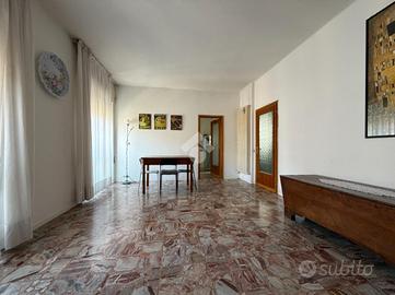 L'ubicazione è uno degli aspetti che colpisce di questo immobile. Ci troviamo infatti in Via Beata Giovanna a pochi passi dal centro storico e dalle sue Piazze in una posizione dove ci si può dimenticare dell'auto. L'immobile oggetto di vendita è sito al terzo ed ultimo piano e gode di un bel panorama e di un'ottima luminosità. Internamente a colpire oltre alla luminosità sono gli spazi interni: generosi e ben organizzati, adatti alle esigenze di una famiglia. Nella zona giorno troviamo ad accoglierci un ampio ingresso, un bagno finestrato con doccia, una cucina abitabile con ripostiglio/lavanderia ed un soggiorno-sala da pranzo luminoso e arioso. Nella zona notte troviamo invece due camere. Interamente l'immobile presenta una buona parte delle finiture originali all'epoca di costruzione con alcuni interventi eseguiti negli anni novanta (rifacimento del bagno, sostituzione della caldaia ed installazione del portoncino d'ingresso blindato). A completare la proprietà oggetto di vendita è presente al piano interrato una cantina ed al piano terra un garage ideale per un'auto di piccole dimensioni o per il posteggio di bici e moto.