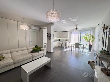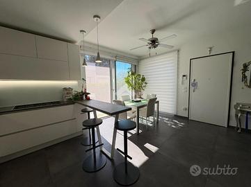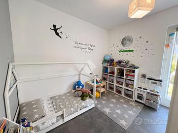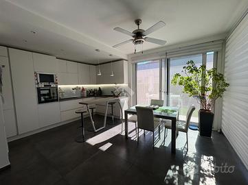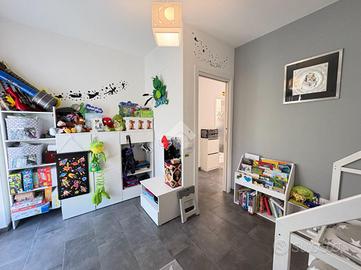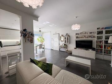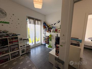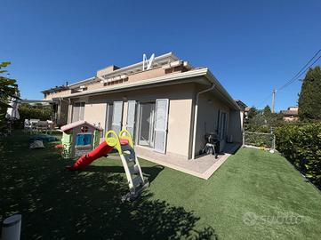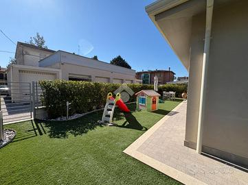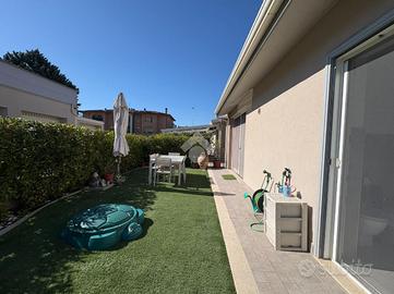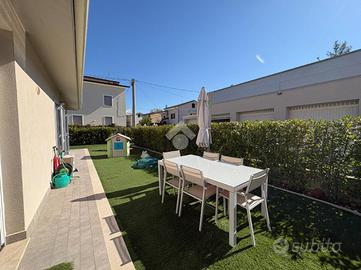 Proponiamo in vendita, all'interno di una recente quadrifamiliare del 2019, elegante appartamento al piano terra con ingresso indipendente, realizzato in classe energetica A4, ideale per chi cerca comfort abitativo, efficienza energetica e spazi esterni vivibili. L'abitazione, di circa 106 mq, si distingue per ambienti ben distribuiti e luminosi: l'ingresso si apre su un ampio soggiorno con angolo cottura a vista, perfetto per momenti di convivialità e relax. La zona notte è composta da due camere da letto, ideali sia per una famiglia che per chi necessita di uno studio o stanza ospiti, e due bagni: uno dotato di vasca idromassaggio, perfetto per concedersi momenti di benessere, e l'altro con comoda doccia. Elemento di grande valore è il giardino perimetrale privato, completamente recintato, uno spazio ideale per vivere all'aperto, organizzare pranzi e cene o per chi ha animali domestici. Completa la proprietà un garage di 22 mq al piano terra, comodo e facilmente accessibile. L'immobile è dotato di tecnologie e finiture moderne che garantiscono elevato comfort e risparmio energetico, tra cui: * impianto fotovoltaico da 3 kW * riscaldamento a pavimento * aria condizionata * infissi in legno con doppio vetro * persiane orientabili * zanzariereSoluzione ideale per chi desidera una casa pronta da abitare, senza necessità di interventi, in un contesto tranquillo e recente.