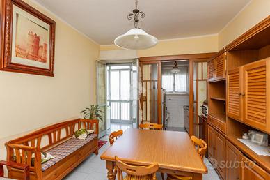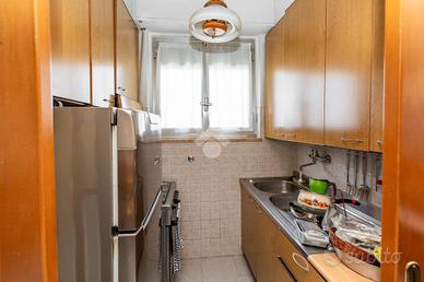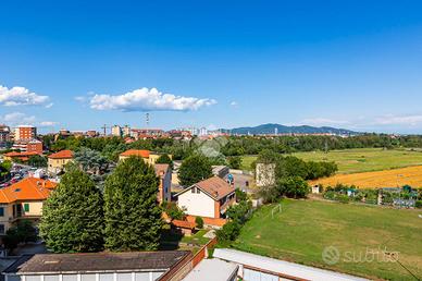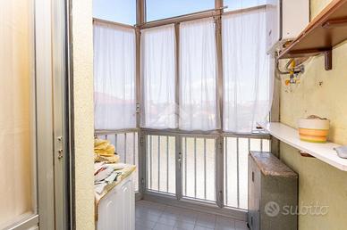Borgo Melano, precisamente in Via De Nicola, in zona tranquilla ma allo stesso tempo comoda ai servizi. Nelle vicinanze troviamo il parco giochi, le scuole primarie e a pochi passo Strada Orbassano dove ci sono le fermate principali dei pullman che portano a Torino e ad Orbassano. In stabile in klinker dotato di ascensore e rivisto nelle parti comuni, appartamento al sesto piano. Tramite portoncino blindato c'è l'ingresso che da accesso a tutte le stanze. La zona giorno è dotata di cucinino e di finestra e di porta finestra con affaccio sul primo balcone pistrallato e verandato dove ci sono gli attacchi per la lavatrice. Le due camere sono ampie e facilmente arredabili;. una dotata di finestra e l'altra di porta finestra con affaccio sul secondo balcone con vista aperta sulle montagne. Il bagno è dotato di doccia e di finestra. L'appartamento è stato ristrutturato circa negli anni 2000. Sono stati rivisti gli impianti e la pavimentazione che è in piastrella chiara. Il riscaldamento è centrallizzato con le termovalvole e le spese di gestione sono contenute. Completa la proprietà la cantina al piano interrato ed un box auto singolo.