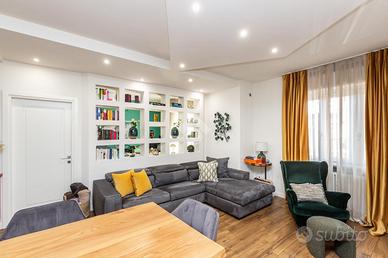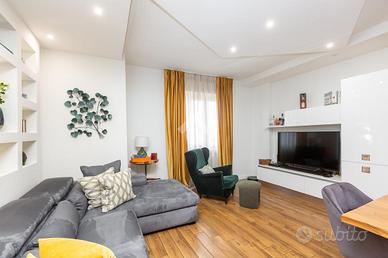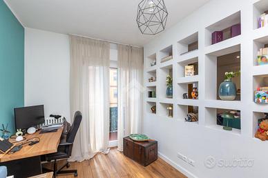 Borgo Melano - Via De Nicola In posizione tranquilla e riservata, ma al tempo stesso comoda a tutti i principali servizi (negozi, supermercati, scuole, parco giochi), proponiamo in vendita un appartamento situato a pochi chilometri dal centro storico e dalla zona Fornaci, dove si trova il centro commerciale. La zona è ben collegata: a breve distanza si raggiunge Strada Orbassano, servita da mezzi pubblici diretti verso Torino e Orbassano. Contesto ideale sia per famiglie con bambini, sia per chi desidera vivere nel verde senza rinunciare alla comodità dei servizi. Lo stabile, realizzato in klinker e dotato di ascensore, presenta una facciata recentemente rifatta. Sono stati eseguiti alcuni lavori straordinari, tra cui il rifacimento dei frontalini e sottobalconi e la re-impermeabilizzazione della guaina sul cordolo del tetto. L'appartamento, situato al terzo piano, è stato completamente ristrutturato nel 2015 con materiali moderni e finiture attuali. La distribuzione degli spazi è stata rivisitata per garantire maggiore funzionalità: la zona giorno e la zona notte sono state invertite rispetto alla configurazione originaria. L'ingresso, tramite portoncino blindato, conduce direttamente alla zona living con cucina a vista lineare, dotata di finestra che garantisce un'ottima luminosità. L'ambiente è valorizzato da controsoffitti in cartongesso con faretti. Un'originale parete in cartongesso, con funzione di libreria, separa la zona giorno da una prima camera, dotata di porta finestra con infissi in PVC con doppio vetro, apertura a ribalta e accesso al primo balcone con affaccio su Via De Nicola. Sempre nella zona giorno è presente un comodo ripostiglio adibito anche a lavanderia. La camera da letto matrimoniale è ben proporzionata e dispone di una cabina armadio finestrata e dotata di termosifone. La stanza è inoltre servita da porta finestra con accesso al secondo balcone, affacciato sul cortile interno, dove si trovano la caldaia per l'acqua calda e il conta