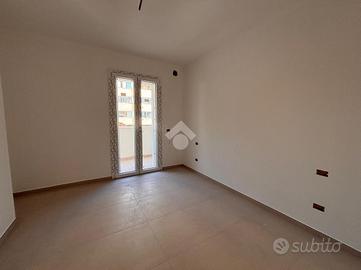 Dall'ingresso si ha accesso alla luminosa zona giorno composta da soggiorno e angolo cottura con accesso al balcone. Un comodo disimpegno ci conduce nella zona notte che comprende una camera da letto matrimoniale servita da un secondo balcone, una camera da letto doppia con affaccio sul balcone del soggiorno e un bagno finestrato con box doccia.