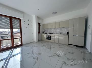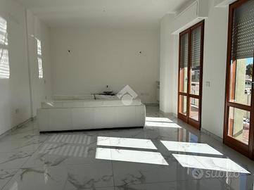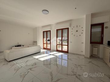 Dall ingresso abbiamo accesso al luminoso e ampio soggiorno open-space con angolo cottura, servito da un balcone.