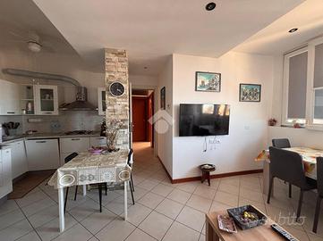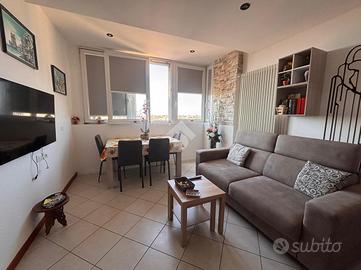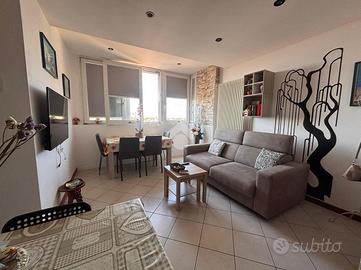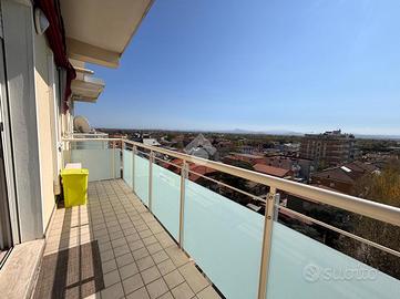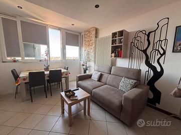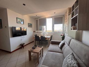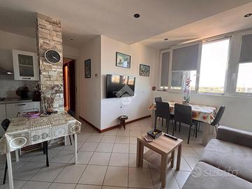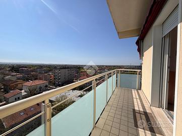 ZONA CENTRO: Nel pieno centro di Bellaria, a pochi passi dal mare, appartamento posto al settimo piano, in palazzina servita da ascensore. Dall ingresso abbiamo accesso alla zona giorno, composta da un ampio open space con soggiorno servito da finestre panoramiche e cucina a vista. Un comodo disimpegno ci conduce alla zona notte, composta da una cameretta finestrata, una camera da letto matrimoniale servita da un ampio balcone con vista panoramica mare e monti e un bagno finestrato con box doccia. La soluzione internamente presenta; pavimentazione in gres porcellanato con posa in diagonale, infissi in pvc doppiovetro con apertura scorrevole, tapparelle elettriche nella camera da letto, tapparelle, aria condizionata, tenda da sole e possibilità di richiedere il posto auto condominiale. La composizione e la cura nei dettagli di questo appartamento lo rendono unico nel suo genere, ottimo per chi è in cerca di una casa residenziale di recente costruzione completa di ogni confort.