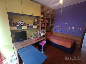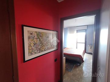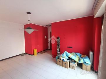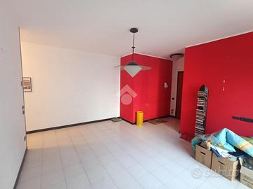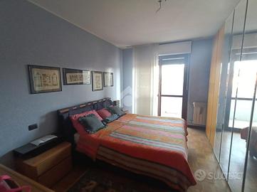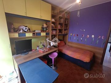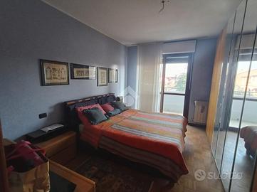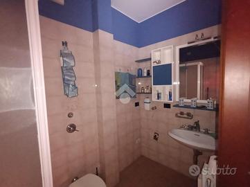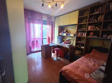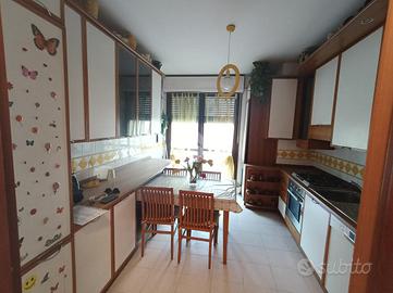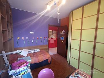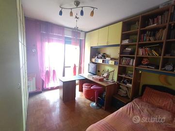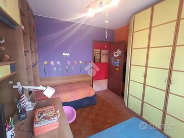 Ingresso in soggiorno ampio, cucina abitabile, bagno con doccia lavanderia, bagno con vasca, camera matrimoniale, cameretta e due balconi.