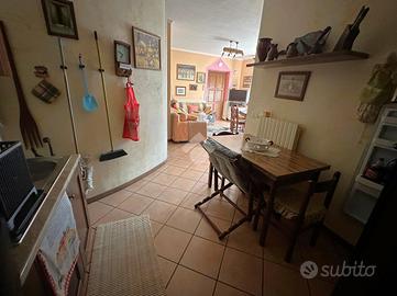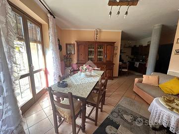 L'ingresso ci conduce direttamente alla zona giorno, composta da un luminoso soggiorno con camino, ideale per momenti di relax, e una cucina con angolo cottura. Il soggiorno offre accesso diretto all'area esterna, perfetta per godere di un po' di tranquillità all'aria aperta.