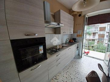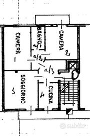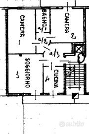 La disposizione interna offre spazi funzionali e accoglienti così disposti: l'ingresso si apre sulla zona giorno che affaccia su un comodo balcone e la cucina è separata ed abitabile, un corridoio porta al bagno, che è finestrato, e alla zona notte che comprende due camere da letto matrimoniali.