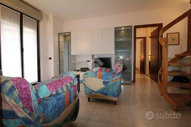 Zona San Paolo: in zona centrale, ben servita e con la comodità del parcheggio, ampio e luminoso ultimo piano in piccolo contesto all'interno del complesso residenziale 'La Roccia'. L'appartamento su due livelli si compone di soggiorno e cucina abitabile entrambi con uscita diretta al terazzo, disimpegno notte con armadiatura che funge da ripostiglio, camera matrimoniale e bagno finestrato con vasca. Da una scala interna in legno si accede alla comoda mansarda con velux motorizzati. La mansarda con accesso anche dalle scale condominiali è costituita da un ambiente unico con annnesso bagno /lavanderia. Riscaldamento autonomo, poche spese condominiali. Finiture in gress porcellnato e parquet in camera e mansarda, infissi in allumnio con doppio vetro. Possibilità di mantenere tutti gli arredi. Annessa grande cantina finestrata, pavimentata ed intonacata. Posto auto condominale interno.