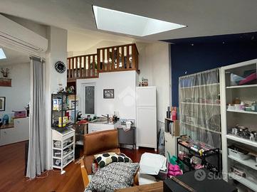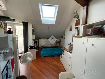 L'ingresso si apre sulla zona giorno accogliente, collegata alla cucina abitabile tramite un terrazzino che serve entrambi gli ambienti. Sullo stesso livello è presente il bagno di servizio.