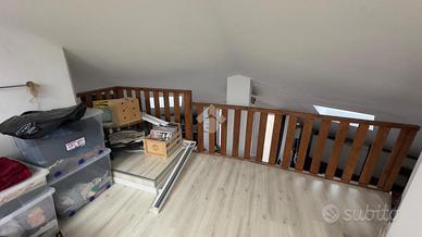 Al piano superiore si sviluppa la zona notte, con il bagno dotato di vasca, il terrazzo vivibile e l'accesso al soppalco, ideale come studio o spazio hobby.