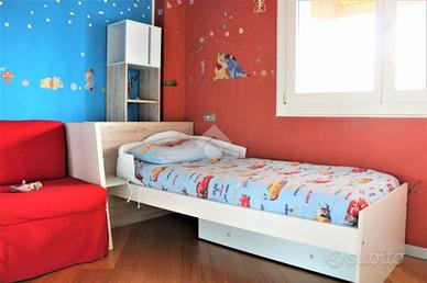 La zona notte, ben separata, offre un disimpegno con pratico ripostiglio, una lavanderia, un bagno padronale, una cameretta luminosa e una spaziosa camera matrimoniale, dotata di bagno privato in suite per il massimo comfort e privacy.