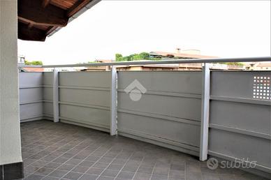 L'ingresso conduce alla zona giorno, composta da un soggiorno accogliente e luminoso e da una cucina separata a vista, funzionale e ben integrata con l'ambiente. Da qui si accede ai due ampi terrazzi di cui uno con vista aperta su città alta, veri punti di forza dell'abitazione, ideali per momenti di relax all'aperto o per cene conviviali.