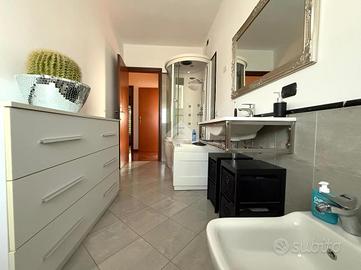 La presenza di due bagni garantisce comfort e praticità per la vita quotidiana. Due balconi offrono spazi esterni privati per momenti di relax. Un ulteriore vantaggio è il box doppio, che assicura comodità e sicurezza per il parcheggio.