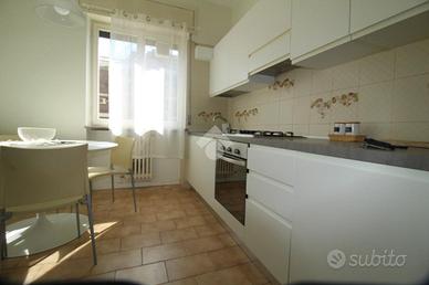 Broseta: in zona centrale e ben servita, ampio e luminoso piano medio servito da ascensore in condominio interno e tranquillo. L'appartamento con affaccio sul parco, si compone di ingresso, soggiorno con uscita diretta al terrazzino, cucina abitabile, disimpegno notte, due camere matrimoniali e bagno finestrato con doccia. Internamente è stato ristrutturato, infissi in legno con doppi vetri. Completamente arredato con mobili di qualità. Riscaldamento semiautonomo per la presenza delle termovalvole e dei contacalorie. Annessa cantina e ampio box.